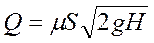 где m=j — коэффициент расхода; S — площадь живого сечения.