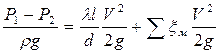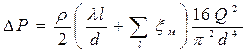 - суммарные потери на трение по длине и на местных сопротивлениях на участке трубы длиной l. Потери по длине в соответствии с формулой Дарси будут