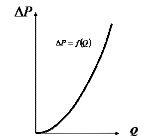 Последнее выражение наз+вается характеристикой трубопровода. Эта характеристика представляет собой зависимость суммарных потерь давления (напора) от расхода в трубопроводе