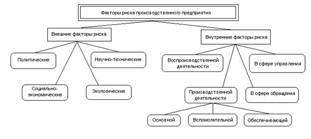 Все возможные факторы хозяйственного риска модно разделить на две группы. К внешним для производственного предприятия относятся факторы, обусловленные причинами, не связанными непосредственно с деятельностью самого предприятия. Внутренними факторами риска являются факторы, появление которых обусловлено или порождается деятельностью самого предприятия [6].