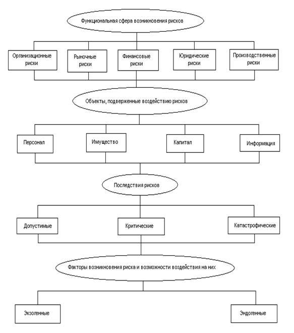 По сфере возникновения риски можно подразделить на: организационные, рыночные, юридические, производственные и финансовые риски