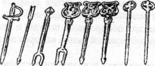 Пластиковая посуда обладает такими важными свойствами как легкость, большая прочность, превышающая прочность стекла, фарфора и относительно невысокая стоимость. Это обусловило их широкое применение, особенно на предприятиях общественного питания, расположенных в зоне отдыха, кафе-автоматах и др. На этих предприятиях могут использоваться посуда и приборы из полимеров (тарелки, блюдца, чашки, подносы, рюмки-подставки для яиц, креманки для сладких блюд, столовые приборы). Для обслуживания приемов по типу фуршет и коктейль в ресторанах применяют пластмассовые шпажки (рис. 3), вилочки для подачи бутербродов канапе и других мелких закусок. Для фруктов, входящих в состав коктейлей, служат специальные коктейльные шпажки.