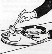 | Бульон с гарниром | Отпускают с производства в суповой миске и на подсобном столе переливают разливательной ложкой в глубокую столовую тарелку, поставленную на мелкую столовую тарелку |