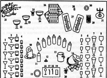 В зависимости от ассортимента заказных напитков на барной стойке или столе расставляют стеклянную посуду (рис. 32).
