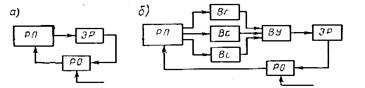 В первом случае значение регулируемого параметра непосредственно вводится в экстремум – регулятор Эр (рис.5.54, а), а во втором – измеряемые параметры процесса посредством воспринимающих блоков Вс вводятся в вычислительное устройство ВУ, которое в свою очередь выдаёт значение заданной функции (например, к.п.д.) в экстремум – регулятор (рис.5.54, б).
