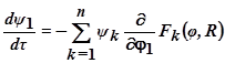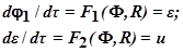 т.е. система второго порядка, для которой можно написать уравнения dφi/dτ = Fi(φ1, φ2,…, φn, ρ1, ρ2,…, ρr), i = 1, 2,…, n, приняв за выходные координаты: φ1 = φ и φ2 = dφ/dτ = ε: