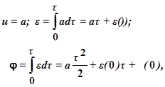 т.е. скорость ε нарастает линейно, а координата φ – по параболе.
