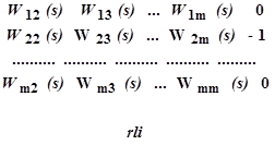 Если считать ∆N2(s) неизвестным, то последняя система становится однородной относительно всех m приращений. Её решение отличны от тривиального (когда все m неизвестных равны нулю) лишь тогда когда определитель, составленный из коэффициентов уравнений, равен нулю: