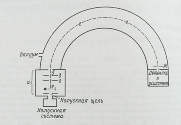 Рис. 1. Схема масс-спектрометра с 180°-ным отклонением.