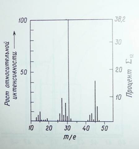 Рис. 3. Формула D-рибозы (А); масс-спектр при электронной бомбардировке (В); масс-спектр при ионизации полем (С).
