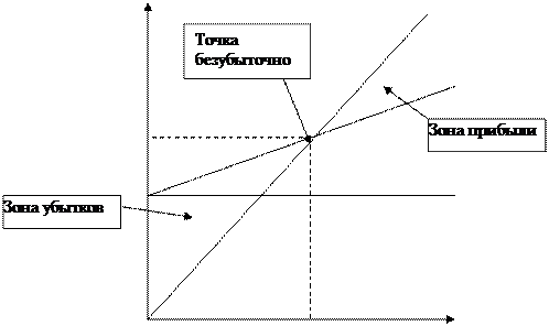 Точка безубыточности (критическая точка, точка равновесия, порог рентабельности) – такая выручка или такой объем производства предприятия, которые обеспечивают покрытие всех затрат и нулевую прибыль, т.е. это тот объем продаж, при котором предприятие не имеет ни прибыли ни убытка.