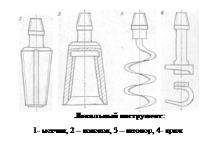 Наиболее распространённые аварии с буровым инструментом. Обрывы труб и породоразрушающего инструмента. Обрывы могут быть прямыми, клиновидными и спиральными, в зависимости от состояния бурового снаряда и прилагаемых к нему нагрузок;развинчивание труб и породоразрушающегоинструмента;падение бурового снаряда, труб и посторонних предметов в скважину (следствие халатности буровой бригады, если устье скважины не закрыто пробкой во время профилактических и ремонтных работ). Причины: 1. Брак завода изготовителя: а) Трещины, раковины из-за не соблюдения технологии производства.б) Брак резьбы соединительных муфт и резьбы вообще (конусность и овальность). Проверяют на данный дефект детали с помощью калибров.в) Брак приобретённый. Проводят промежуточный контроль. 2. Нарушения режима эксплуатации: а) Закрепление резьбовых соединений. Вибрация и утечка буровой жидкости разрушают не докрученную или перекрученную трубу.б) Серосодержащая нефть разрушает трубы (металл становится хрупким), тем более ЛБТ. 3. Нарушение технологии бурения скважины. Ликвидация аварий: Для ликвидации аварий применяют специальные ловильные инструменты: шлипс, колокол, метчик, магнитный фрезер, паук и другие. Однако лучше всего предотвращать аварии, строго соблюдая правила эксплуатации оборудования, своевременно осуществляя его дефектоскопию, профилактику и замену.При авариях с трубами используют колокол и метчик.Метчик предназначен для ликвидации обрывов труб. Они спускаются в скважину на бт, используемых при бурении. Метчик, представляющий собой стальной закаленный винт конической формы с треугольной мелкой нарезкой и 4 продольных канавки, которые образуют режущую кромку, нижний конец которого свободно входит в отверстие штанг. При ввинчивании метчика в оборванную трубу нарезается резьба, а стружки по канавкам удаляются.Продольные канавки ловильного винта предназначаются для стружки, образующейся при прорезывании винтом стенок штанги трубок. Трубы, на которых спускают колокол или метчик, имеют левую резьбу. Если поднять аварийные трубы не удаётся, то ставят цементный мост и забуривают новый ствол.Если попали посторонние предметы в скважину, то используют
