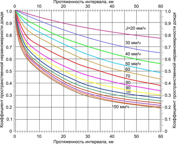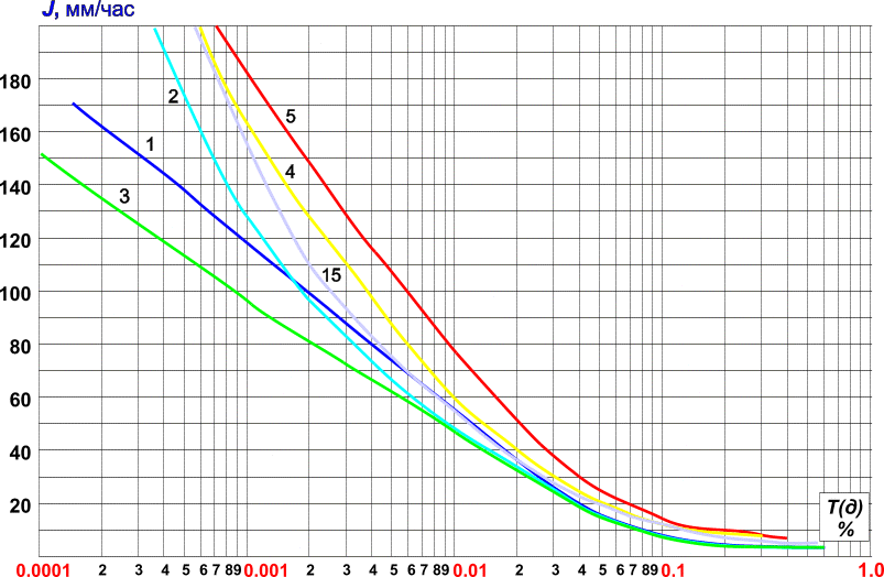 1. Задаться несколькими (5 - 10) значениями интенсивности дождя J в пределах 20 - 120 мм/час;