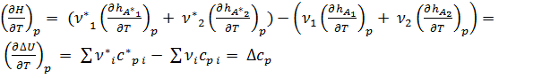 - разность сумм теплоемкостей продуктов с учетом стехиометрии
