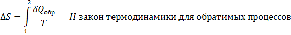 При протекании обратимого процесса энтропия сохраняет своё постоянное значение, а необратимого возрастает.