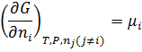 Химический потенциал равен мольному произведению функции Гиббса в смеси при добавлении к ней i-го компонента.