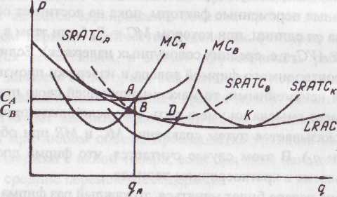 Производственная эффективность - предполагает равенство цены долгосрочным средним совокупным издержкам при достижении фирмой оптимальных размеров: Р = АТС