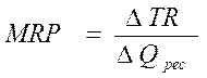 где MRP - предельная доходность ресурса; ΔTR - изменение общего дохода от использования ресурса; ΔQ рес - изменение количества ресурса.