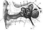 Орган слуха человека (рис. 7) улавливает (наружное ухо), усиливает (среднее ухо) и воспринимает (внутреннее ухо) звуковые колебания, представляя собой, по сути, дистантный анализатор, периферический (сенсорный) отдел которого располагается в пирамиде височной кости (улитке).