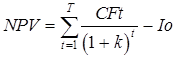 Для его получения в числитель формулы (1) необходимо подставить размер чистого потока платежей (cash flow) в каждом из годов реализации инвестиционного проекта и просуммировать результат по всему периоду: от 0 до Т. В этом случае формула (1) примет вид: