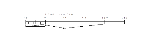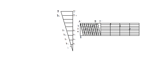 Түзу сызық жоғарыдағыдай «масштаб негізін» 2 см-ге тең етіліп, бірнеше бөліктерге бөлінеді. Оң жақтағы 0, 2, 4, 6, 8 нүктелерінен перпендикуляр тұрғызылып,, олар төменге түзу сызықтан бастап әрқайсысы 2 не 3 мм-ге тең 10 бөлікке бөлінеді. Бөлінген нүктелер арқылы бастапқы түзу сызыққа параллель сызықтар жүргізіледі. Сол жақтағы масштаб негізінің төменгі және жоғарғы қабырғаларға «10-ға бөлініп, масштабтың кіші негізі» алынады. Олар суреттегідей қиғаш сызықтармен қосылады. Осылай сызылған көлденең масштабтың ең кіші бөлігі «bo» кесіндісі «ВО» -ның 1/10 не, яғни 0,2мм-ге сәйкес келетін жер бетіндегі горизонталь ұзындықты көлденең масштабтың дәлдігі дейді. Масштаб дәлдігі мына формуламен анықталады: