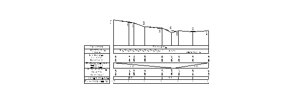 2)Профильдің торын сызу. Шартты горизонттың төменгі жанына 43-суретінде көрсетілген размерлер арқылы профильдің торы құрылады. Бұл торға профильдегі нүктелердің дәл және жоба – H` биіктіктері, т.б. мәліметтері жазылады.