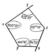 Біздің үлгімізде байланыспауды -2´ бұрышты қысқа жақтарымен мөлшеріне және жазып қоямыз, полигон бұрыштарына -1´ екіден қоя және бұрыш 2 бұрыш 3 мөлшеріне қоя отырып.