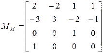 Представление кривой с помощью B-сплайнов в матричной форме имеет вид: