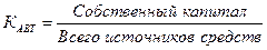 Характеризует степень финансовой независимости предприятия. Чем выше значение этого коэффициента, тем более финансово устойчиво, стабильно и независимо от внешних кредиторов предприятие изменяется в пределах от 0,5 до 1,0.