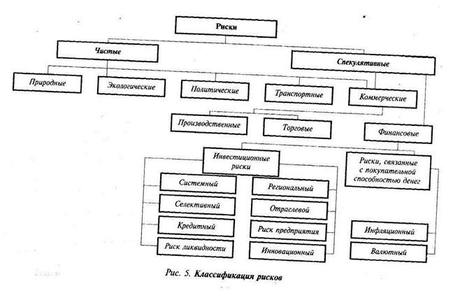 Как уже отмечено выше, все операции в рыночных условиях и прежде всего инвестиции так или иначе сопряжены с риском и участникам рынка всегда приходится брать на себя самые разнообразные риски: потери имущества, финансовых потерь, снижения доходов, упущенной выгоды.