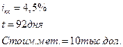 3) коммерческий кредит на поставку металла выдан на 3 месяца. Стоимость металла 10 тыс. дол., надбавка за предоставление кредита 4,5%;