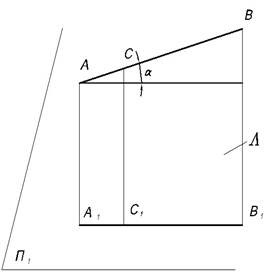 где; - угол наклона прямой АВ к плоскости проекций П 1.