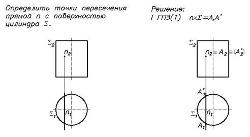 1-я ГПЗ – пересечение линии и поверхности.