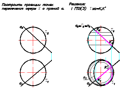 Пример 2 Пересечение прямой общего положения а с поверхностью сферы S (Рис.46).