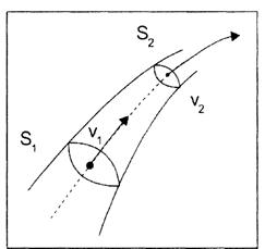 болатын (сурет 1) түтікше арқылы сұйық ағады деп есептейік. Осы қималардағы сұйық ағынының жылдамдығы