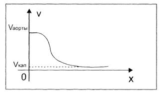 Сурет 2. Адамның қантамырлар жүйесінің түрлі бөліктерінде жылдамдықтардың үлестірілуі: аортадағы қан ағысының жылдамдығы (