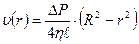 Тұтқырлы сұйықтың цилиндр пішінді құбырмен ағысын қарастырайық. Құбырдың қималары бойынша сұйық жылдамдықтарының үлестірілуі мына формуламен анықталады: