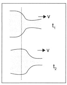 екі уақыт мезетіндегі пульсті толқынның таралуының профильді кескіні 6-шы суретте көрсетілген.