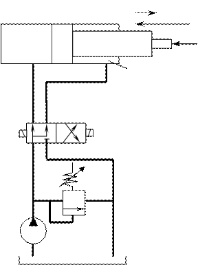 Для уменьшения осевого габарита и обеспечения равенства прямого и обратного хода была разработана схема подключения одноштокового гидроцилиндра которая названа дифференциальной.