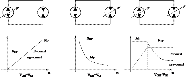 При объемном регулировании скорости рабочего органа используются регулируемые насосы и регулируемые гидромоторы которые имеют возможность изменять свой объем в процессе работы. Объемное регулирование может осуществляться тремя способами: