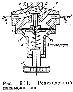 Для нормальной работы пневматических приводов, кроме очистки сжатого воздуха и подачи в пневмолинию распыленного смазочного материала, требуется еще и стабилизация рабочего давления в пневмолинии. Для обеспечения надежной работы рабочее давление в пневмоприводе выбирают несколько меньшим давления сжатого воздуха в цеховой пневмосети. Для снижения и регулирования давления в пневмолиниях применяют пневматические аппараты, которые называют редукционными пневмоклапанами.