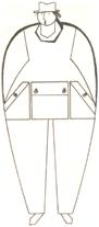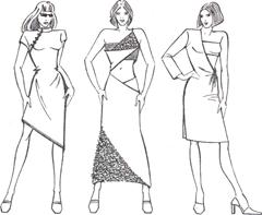 ![]() | Іноді трапляється так, що заповнену декором і деталями простір костюма здається більше, ніж рівне йому незаповнений. Тому краще уникнути нагромадження деталей у тій частині фігури, розміри якої небажано збільшувати. ![]() | |||||