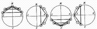 ![]() | • центрально-осьова симетрія - при цьому виді симетрії рівні частини розташовані навколо центральної осі і при повороті навколо неї вони повністю поєднуються; прикладами такої симетрії є різноманітні розетки, вписані в коло; | ||||