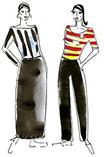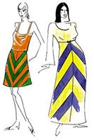 ![]() | Вибираючи розташування смуг на смугастої тканини (вертикальне чи горизонтальне), можна, наприклад, надати повній фігурі стрункість, враховуючи ширину, частоту і ритмічність смуг. При складному розташуванні смуг (наприклад, під кутом) важливо врахувати, що кути, утворені зустрічними смугами, спрямованими вістрям вгору, скорочують ширину стегон повної фігури. Кути, спрямовані вістрям вниз, навпаки, візуально розширюють стегна, навіть якщо зробити вертикальну вставку посередині. | |||||