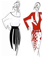 ![]() | Ця заснована на асиметрії ілюзія, наприклад, може створюватися тим, що ліва половина костюма біла, права - чорна, лівий рукав - чорний, а правий - білий. Завдяки поділу по вертикалі можна скоротити обсяг повної фігури, надавши їй деяку стрункість і динамічність. | |||||