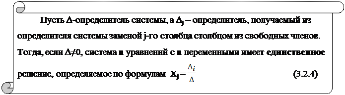 Пусть число уравнений совпадает с число переменных m=n. В этом случае матрица А=(аij)nxn является квадратной. Назовем определитель этой матрицы ∆ =│А│ определителем системы.