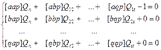 где E – единичная матрица то, очевидно, что для поиска первой строки коэффициентов матрицы Q необходимо решить систему уравнений: