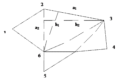 Аналитический способ определения площадей заключается в вычислении площади по результатам измерения линий и углов на местности. Он применим лишь к простым геометрическим фигурам: треугольнику и четырехугольнику. Могут быть выведены формулы для пяти - шестиугольников и других фигур. Но они являются громоздкими. Поэтому вместо них площади в полигонах вычисляют по координатам.