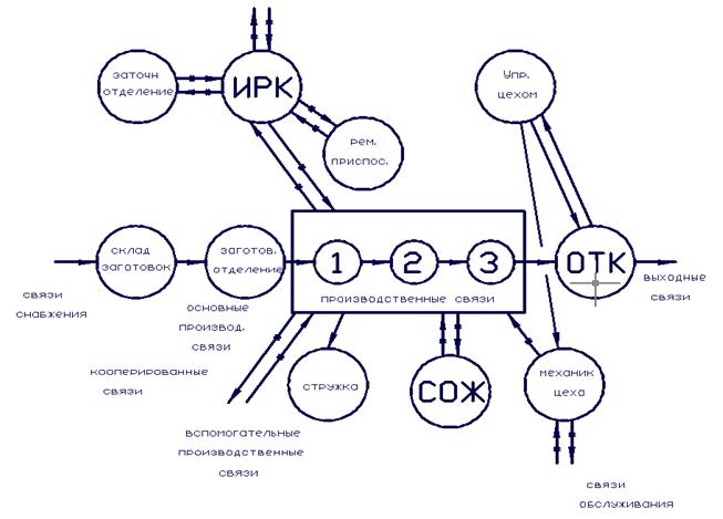2. внутрицеховые связи с общей системой производства и управления «завод».