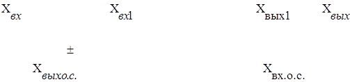 Обратная связь называется положительной, если ее введение увеличивает значение выходной величины хвых (по сравнению со значением хвых без обратной связи) и отрицательной, если уменьшает значение хвых. При положительной обратной связи выходная величина элемента обратной связи хо.с. суммируется с входной величиной хвх, при отрицательной – вычитается. Таким образом, входная величина основного элемента при введении обратной связи: